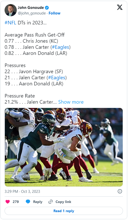 Posted October 4, 20231 yr Eagles Fill a Slot Posted: October 3rd, 2023 | Author: Tommy Lawlor The Eagles had a deep group of cornerbacks coming into the season. They had a good mixture of youth and veterans. There was a lot of talent. There was just one hole, the backup in the slot. So naturally Avonte Maddox, the starting nickelback, got hurt. The coaches moved James Bradberry inside and put Josh Jobe outside for the past couple of games. That delivered mixed results. The front office decided to make a move on Tuesday. Roby is 31. He’s played 126 games in his career. He’s got okay size at 5-11, 194. Most importantly, he can play in the slot or outside. The Eagles have struggled in coverage this year. Only two teams have allowed more TD passes, the Bears and Broncos. Yikes. Those are two teams you don’t want to be compared to. Opposing QBs have a rating of 99.5 against the Eagles this year, which puts them down at 26th. Not ideal. Injuries and youth have caused Sean Desai to put some flawed lineups on the field. Adding Roby can help. That will give the team an experienced player in the slot and allow Slay and Bradberry to stay outside. That is the best lineup for the Eagles right now. As Jeff pointed out in his tweet, Roby will need a little time to get ready. It would be great to have him when going against the Rams, but he’ll probably wait a week or so to get on the field. We have seen promise from some of the young DBs. Josh Jobe is tough and physical. He will battle. He’s got a short memory and doesn’t panic after he’s beaten. I can see Jobe as a future starter. Sydney Brown has flashed at safety and in the slot. The coaches probably like him long term at safety, but could get him slot reps this week. We’ll see if he’s healthy enough to play. It can take time for coaches and players to come together on pass coverage and get everything synced up. The Eagles defense is off to a rough start, but I think they have the pieces to make this work. ***** The DTs are playing at a high level now. Jalen Carter continues to play at a make his presence felt. He just missed a sack on Sunday, but was disruptive at times. Don’t forget about Fletcher Cox. He was outstanding against Washington. It is crazy to think he was drafted in 2012 and continues to play at a high level. ***** One player I’m very happy for is LB Nick Morrow. He got a lot of criticism this spring and summer. Morrow signed to the practice squad after he was cut. Then he got promoted and he’s taken advantage of his chance to play. I don’t put a lot of stock in those grades, but even if they are close, it is a sign of how well Morrow is playing right now. He had the safety in Tampa. He had 3 sacks against Washington. Morrow is making plays, which is what you want at LB. Zach Cunningham is the reliable tackler and run defender. Together they have formed a better LB duo than any of us would have expected. Another good job by Howie Roseman and his staff to find cheap help at a position where the Eagles are willing to take a chance. http://igglesblitz.com/2023/10/eagles-fill-a-slot/