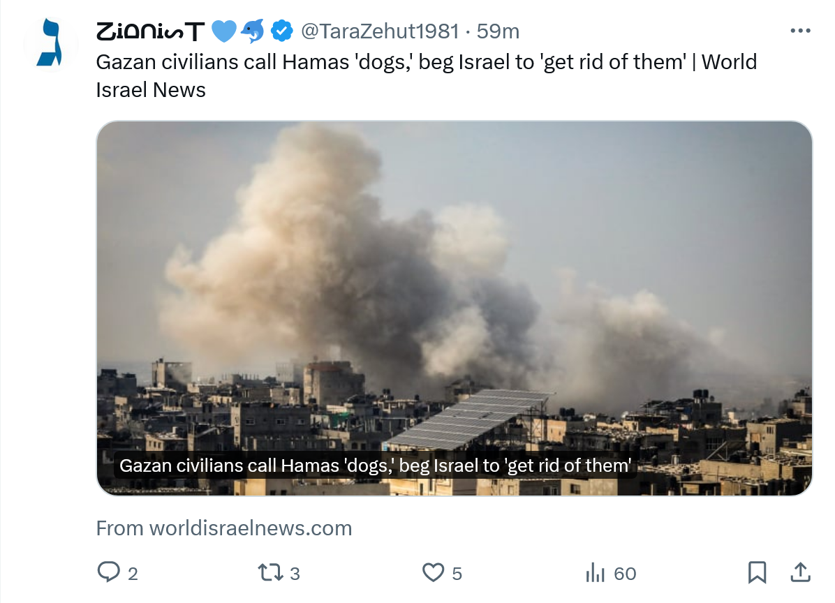 January 15, 20241 yr @Dave Moss - well, do you support Gazan civilians or don't you? https://worldisraelnews.com/gazan-civilians-call-hamas-dogs-beg-israel-to-get-rid-of-them/ Gazan civilians call Hamas ‘dogs,’ beg Israel to ‘get rid of them’ January 14, 2024