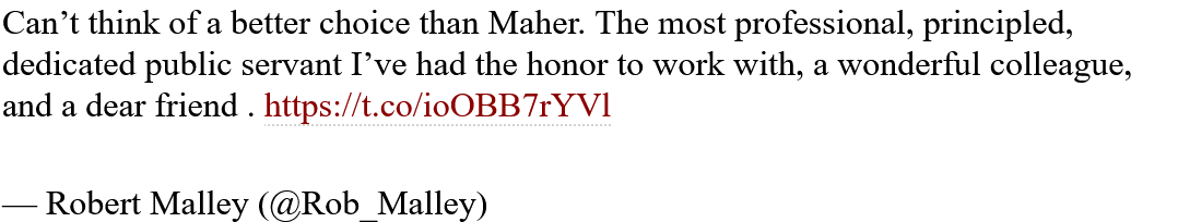 January 29, 20241 yr 9 minutes ago, Procus said: Sounds scary! Quote Maher Bitar serves as Special Assistant to the President and Senior Director for Intelligence Programs on the White House’s a National Security Council staff. He served in both the Barack Obama and Joe Biden administrations. He is Palestinian. Bihar has a Master's degree from Oxford University, where he was a Marshall Scholar. He studied at Georgetown Law School. He was a legal representative for U.S. Representative Adam Schiff. He succeeds Michael Ellis. He has written about political organizing among Palestinian refugees. He has worked for the U.S. government since 2011 when he was a student trainee. Oh