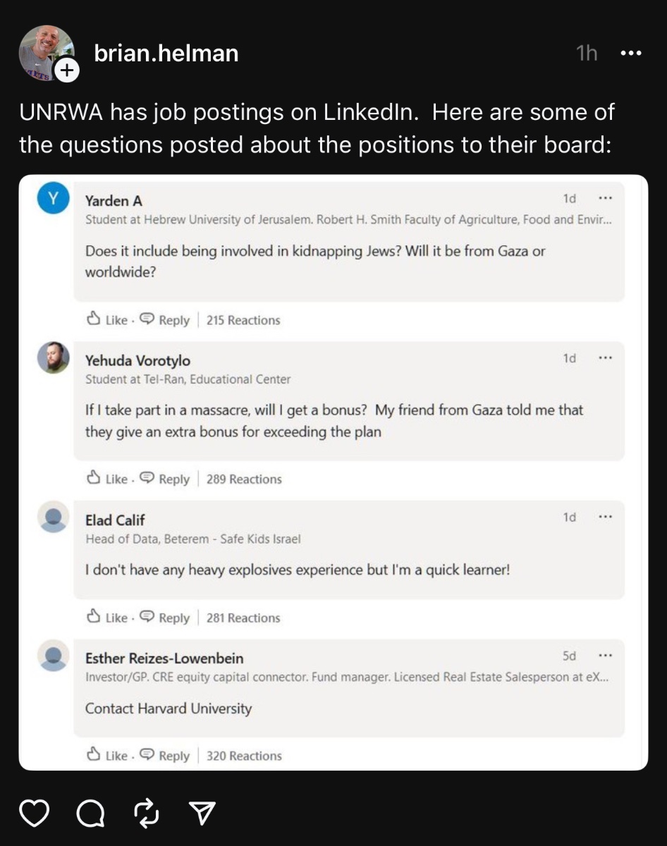 February 15, 20241 yr Author 3 minutes ago, Procus said: I don't know about the capital being in Jerusalem, but it's widely reported that the administration wants to push a plan to set up a Palestinian state following the war. There was a Washington Post article this morning to that effect. FWIW - the tweet that I posted that made reference to Jerusalem as capital was a retweet from the Israeli Minister for Diaspora Affairs. There really isn't any hope of a two-state solution at this point. Not going to happen.