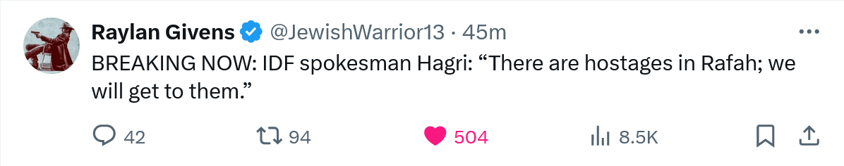 May 14, 20241 yr 2 minutes ago, Procus said: F the hostages, what about the innocent women and children? - Dave Moss, probably