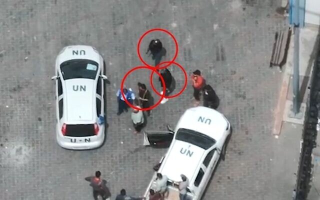 May 15, 20241 yr Palestinian gunmen are seen at a UNRWA logistics center in southern Gaza’s Rafah and near United Nations vehicles, in IDF drone footage from the weekend. According to the IDF, the gunmen were spotted by troops of the Givati Brigade on Saturday at UNRWA’s logistics center in eastern Rafah. The video shows the gunmen next to UN vehicles and in the logistics compound itself, which the IDF says is used by the UN body to deliver humanitarian aid. The IDF says one clip also shows a gunman opening fire inside the complex. https://www.timesofisrael.com/liveblog_entry/idf-drone-footage-shows-palestinian-gunmen-inside-unrwa-logistics-center-in-rafah/