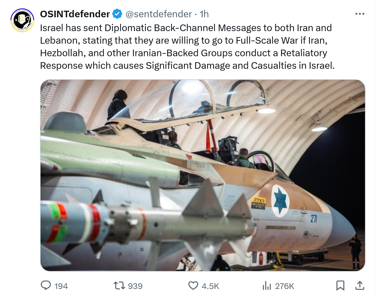 July 31, 20241 yr I don't know if full scare war can be avoided at this point, but if it can, a show of strength is the best deterrent