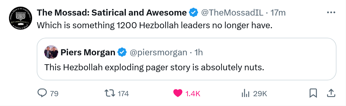 September 17, 20241 yr So, uh, all of Hezbollah’s pagers exploded at the same time. Like all of them. At the same time.