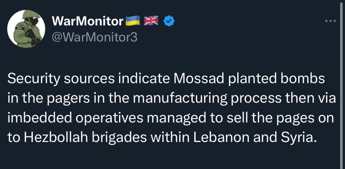 September 17, 20241 yr 1 hour ago, Bill said: So, uh, all of Hezbollah’s pagers exploded at the same time. Like all of them. At the same time. So either the Mossad infiltrated the supply chain on this particular model or their cyber warfare unit hacked the retail units and figured out a way to remotely induce thermal runaway of the battery? Wild stuff.