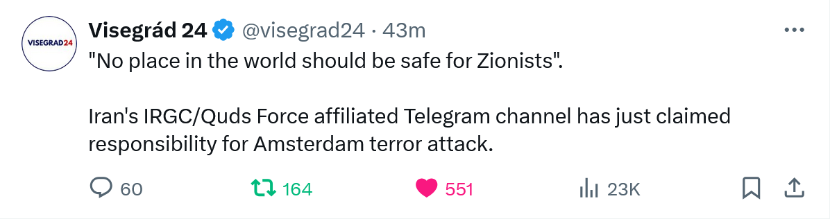 November 8, 2024Nov 8 Tonight, Jews in Amsterdan are under attack from Muslim mobs. The Dutch authorities have not intervened, although the Prime Minister issued a strong statement. The IDF looks to be on it and sending out a rescue mission in coordination with the Dutch government.