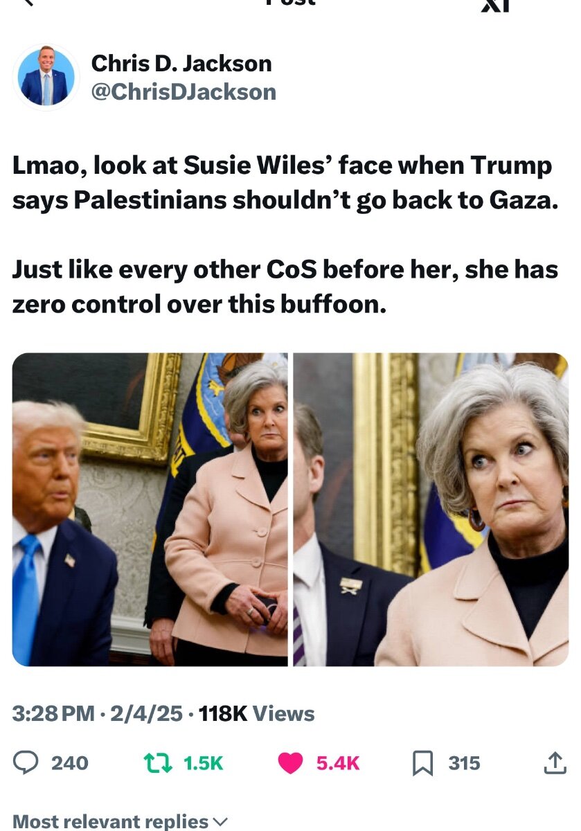 February 5Feb 5 Remember when all the Palestinians thought Trump would be better than Harris? How’s that working out for you ? 😆