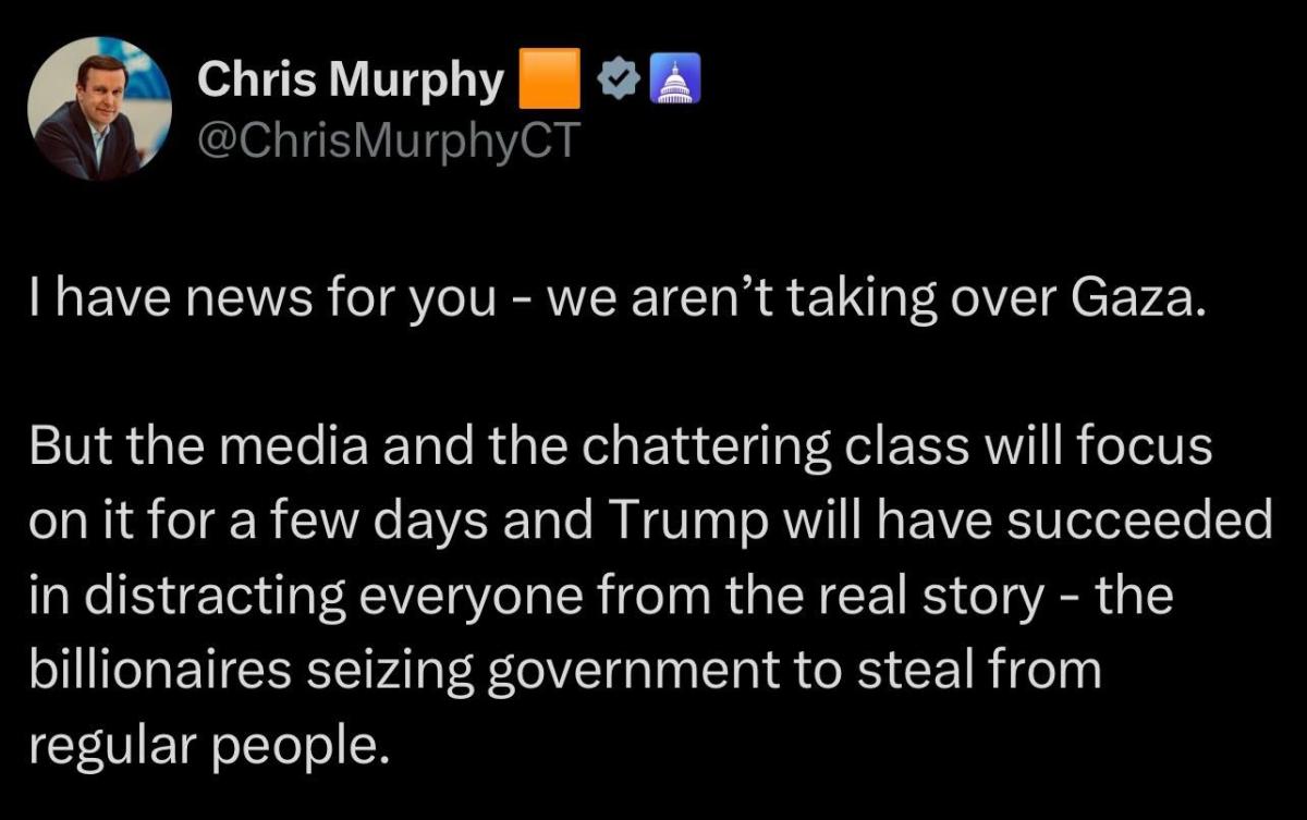 February 5Feb 5 Trump wants to "clean out” or "sanitize” Gaza and then not let the Palestinian people back there so Israel can settle it and make it resort-like. That’s my take-away so far.