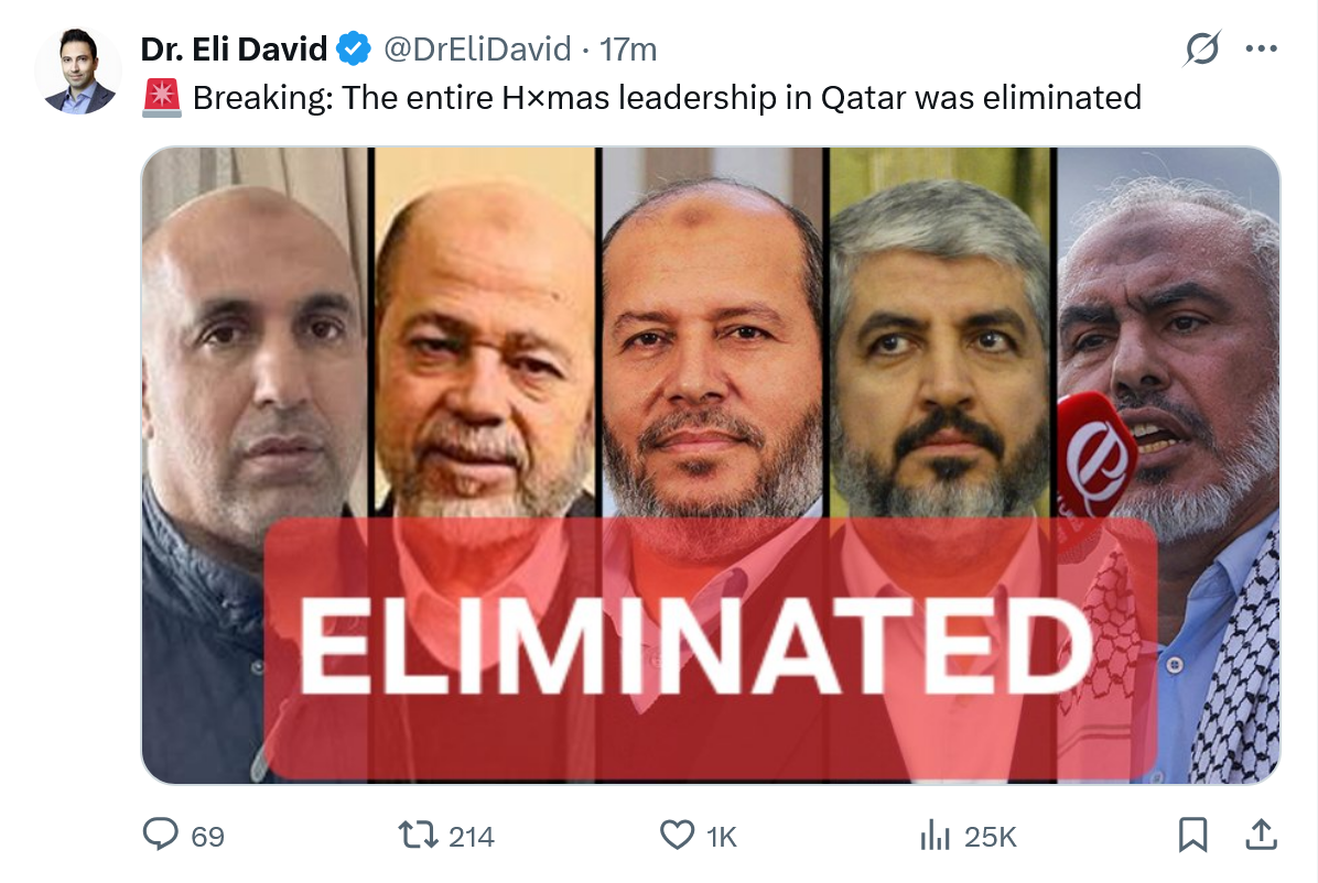 September 9, 2025Sep 9 Looks like the US told them to meet for peace then gave Israel the targets to bomb them. Surely, another good look for Israel