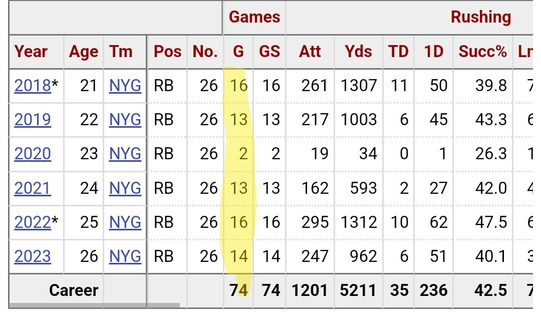 June 27, 20241 yr 1 hour ago, eephraim said: And that will last 3 weeks until he gets hurt for 10 weeks. Outside of 1 season, he's never missed more than 3 games a season.