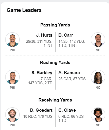 February 4Feb 4 Stupid argument, because the following things are all true: Barkley is an elite RB and elevated our running game The O line is elite and has always paved the way for a strong running game Our O line + Barkley is unstoppable Hurts' running ability contributes to the run game success and another element defenses have to account for Several examples in recent weeks confirmed by analysts and press conferences where Hurts read the defense and changed the play call to set up a successful Barkley run. That isn't most times, and doesn't take away from Barkley at all. Regarding Hurts elevating play, he isn't a great passer which should be obvious to everyone except blind homers. However, he has qualities in his character and leading by example that I think elevate the focus of the team. Leadership, confidence, poise, focus, he does not let big moments/games rattle him, he recovers from mistakes and losses, keeps the focus on team winning and not himself. Sirianni preaches these same values, and you hear lots of players talk about it. It's a team culture and despite a lot of adversity - especially last year's collapse - they have stuck together. Every time the media or fans have tried to turn something into a controversy, the coaches and players have immediately had each other's backs and downplayed it. Anyway, long winded way to say Hurts does elevate his teammates but I think it's more as a person and teammate and leader, not as a traditional passer.