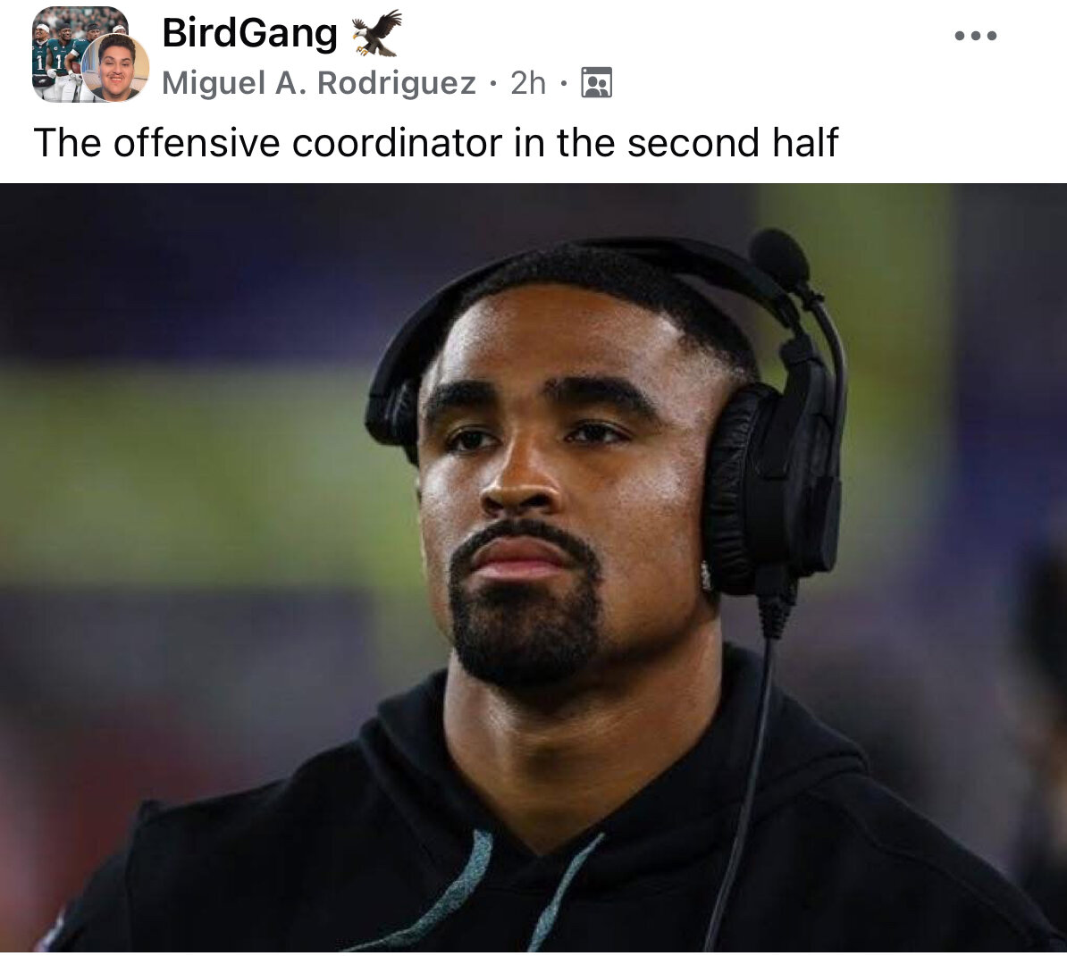 September 22Sep 22 Jalen told Pam Oliver that the second half of this Rams game was Eagles football. Confirmed: The Eagles OC is holding this team back.