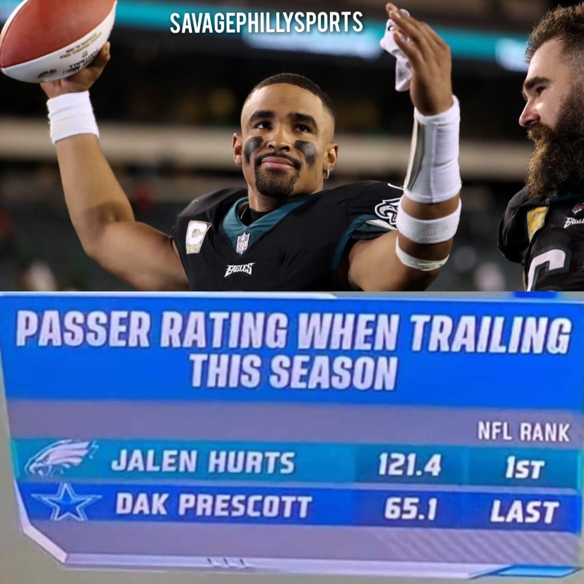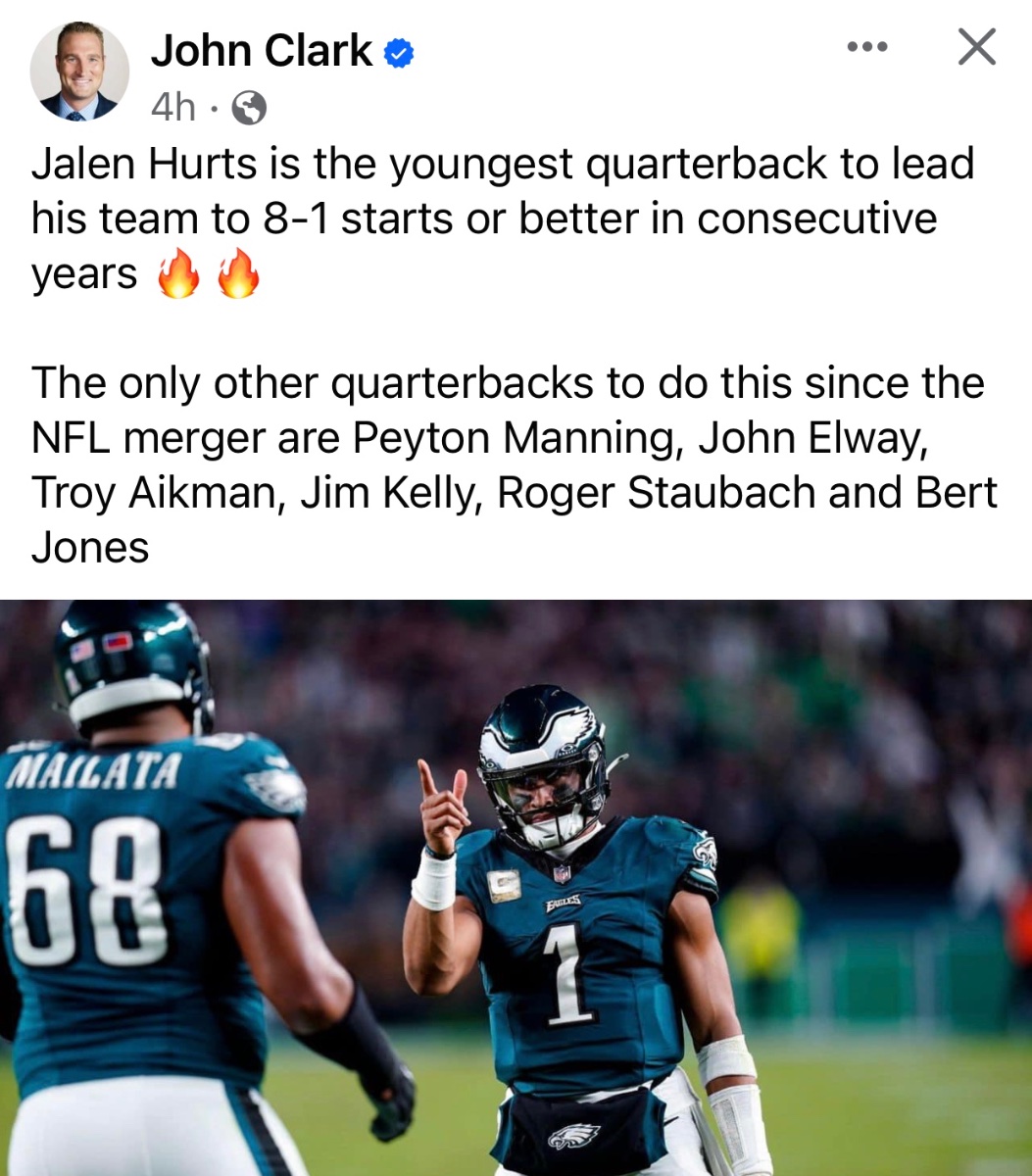 November 6, 20231 yr 2 hours ago, ManchesterEagle said: So Jalen has the Eagles at 8-1, is the current MVP favourite with 22 TDS and is doing this with a pretty bad knee injury. Anyone who thinks he is or was done is a genuine idiot. Not sure if he's the favorite for MVP, but the rest is spot on.