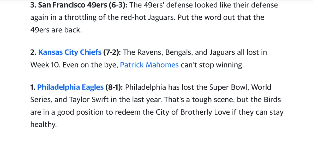 November 13, 20231 yr 1 hour ago, EazyEaglez said: The disrespect is real. Im shocked the Niners arent back to number 1.