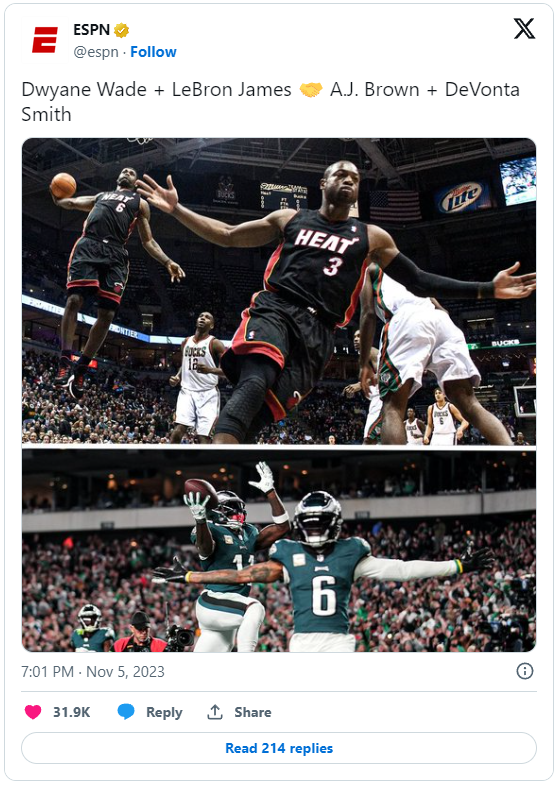 Posted November 7, 20231 yr Final observations: Eagles 28, Cowboys 23 The Eagles took down their NFC East rival, improving to an NFL-best 8-1 after beating the Dallas Cowboys. BY SHAMUS CLANCY PhillyVoice Staff BILL STREICHER/USA TODAY SPORTS Jalen Hurts reacts after the Eagles scored a first-quarter touchdown on a Kenny Gainwell run against the Cowboys on Sunday. In a tight NFC East affair, the Eagles beat the Cowboys 28-23 as the continue to hold down the best record in the entire sport. Here are my final observations from the Birds' gigantic division win. You can check out my first half observations too. Let's get after it... The Highs • Jalen Hurts came up wobbly at the end of the first half, sending Eagles fans into a panic. Hurts has no doubt been dealing with a knee injury as of late, looking a tad slower than his usual self and less mobile, but that's coinciding with him getting better and better as a pocket passer. After destroying Washington's defense last week, Hurts uncorked his best throw of the night on a 29-yard touchdown to DeVonta Smith on the opening drive of the third quarter: The Eagles set that up with some timely runs from D'Andre Swift, Rashaad Penny and even Hurts himself, who moved the chains on a third and two. After a sour first half that sent them into the locker trailing by three, the Birds came out and kicked some ass to start the third quarter. • Zach Cunningham had a great sequence early in the third quarter. He had a crushing blow on Jake Ferguson on an incomplete pass from Dak Prescott. On second down, he shut down a KaVontae Turpin end around for no gain. On third down and 15, Cunningham helped slow down Ferguson, prevent a first down and force a punt. The Eagles are never going to have a legitimately good linebacker group, but Cunningham, a late-summer signing, has played better than anyone could've hoped this season. It happened again in the fourth quarter. On first and goal, Cunningham had an end zone deflection when covering Ferguson. On second down, he stopped Tony Pollard short on a hand off. On third down, he trucked Prescott, sending him airborne as Lincoln Financial Field started rocking for real. Dallas couldn't convert on fourth down after all of that. What a game from Cunningham. • DeVonta Smith always does the little things, which speaks to his winning background. Look at him as a blocker: He's tough as anything. • The Eagles dominated the time of possession to start the half. They methodically drove down the field on their second drive of the third quarter before Hurts found Brown for a three-yard TD: In the third quarter alone, the Birds had the ball for nearly 10 minutes (9:55). Even when it feels like the Eagles' offense isn't playing its best, they're still rolling defenses. • With the Cowboys trailing by less than a touchdown and making some noise, the Birds' defensive line came up clutch. On first down, Brandon Graham and Josh Sweat brought down Prescott for a seven-yard loss. On third down, it was Graham yet again, the longest tenured Eagle, combining with Jalen Carter, the team's star rookie, to sack Prescott for a four-yard loss. Time is a flat circle. The Lows • Throwing a deep ball to A.J. Brown? Great. Throwing it into triple coverage while they have a four-point lead and they're moving the ball down the field and killing the clock? I'm not sure what Hurts was thinking with that throw with a little over three minutes remaining in the third quarter. • Dallas Goedert had a ferocious 28-yard pickup down the Dallas sideline in the third quarter, but went into the locker room after the play following a questionable hit from Cowboys linebacker Markquese Bell. It was a forearm injury and it did not look great. Nakobe Dean was also ruled out on Sunday with a foot injury. The bye week is coming at a much-needed time. • CeeDee Lamb ate the Eagles' secondary alive. It didn't matter if it's an undrafted rookie like Eli Ricks or an All-Pro like James Bradberry. The Prescott-Lamb connection in the second half prevented this from being a comfortable Eagles win. It made it an unnerving win, really. Time and time again it happened! • The Eagles' defense bent and broke in every direction on Dallas' first TD drive of the second half midway through the fourth quarter. Prescott threw for 60 yards alone on that drive before firing a touchdown strike to Jalen Tolbert. • This game went down to the wire. With under a minute remaining, James Bradberry was called for a DPI and set up Dallas with field position at the 50. A roughing the passer call on the very next play on Haason Reddick sucked the air out of the Linc. Two plays later, Carter jumped for an encroachment penalty. Every bad thing that could happen happened. Josh Sweat, however, destroyed Prescott for a sack and a massive 11-yard loss with the clock ticking away. A delay of game penalty amidst all this chaos with more plot twists than an M. Night Shyamalan movie brought a third and 26 that Dallas, honestly, could've converted. Prescott found, of course, Lamb, but the wideout came up short of the goal line. That was a lot. Sheesh. The Whoas • After Jake Ferguson's fourth quarter touchdown was overturned and Dallas turned the ball over on downs, the Linc started playing "Shout" by the Isley Brothers and, I swear on anything, you could feel the press box shaking from people losing their minds dancing. • What a picture: • With both teams heading to the bye, the 8-1 Eagles will meet the 7-2 Chiefs in Kansas City on Nov. 20 on Monday Night Football. It will be the first time ever that the Eagles have a Super Bowl rematch in their ensuing season. It may double as a Super Bowl LVIII preview, too. https://www.phillyvoice.com/eagles-cowboys-final-score-analysis-dallas-goedert-injury-jalen-hurts-touchdown/