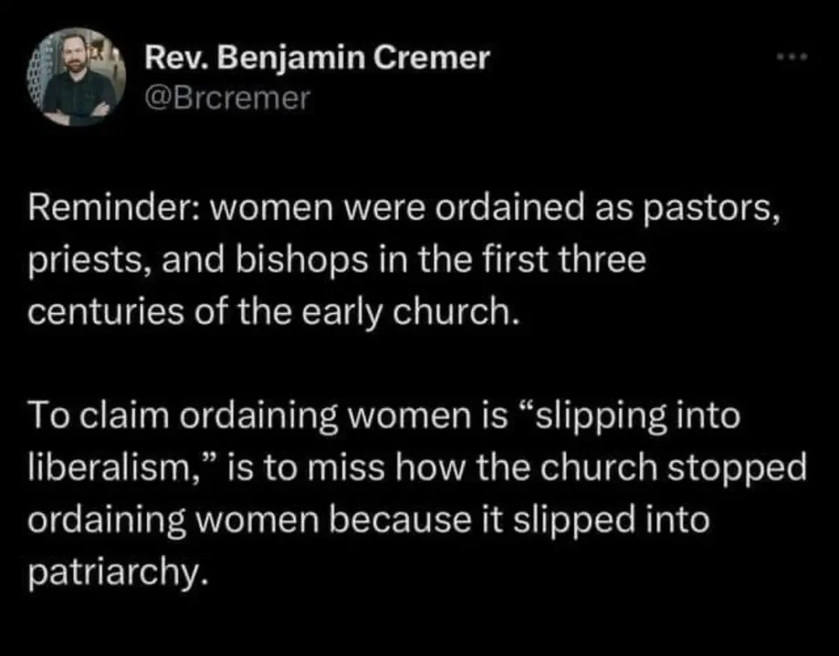 May 6, 20241 yr Reminder: Jesus chose only men as apostles. Reminder: since the beginning of Abrahamic religion, priests represented a "father" figure. Reminder: Benjamin Cremer doesn't have the authority to change holy doctrine, despite all the societal pressure he feels that leads him to that conclusion Women have an incredibly important role in the Catholic church and are equal to men, it's been that way since the beginning. To imply otherwise is flat out wrong. But Catholic doctrine doesn't change with society and never will, sorry new age reverend.