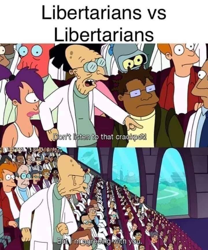 November 20, 20231 yr If anyone claims to have a clue about Libertarians, they would know that they fight with each other more than anyone.