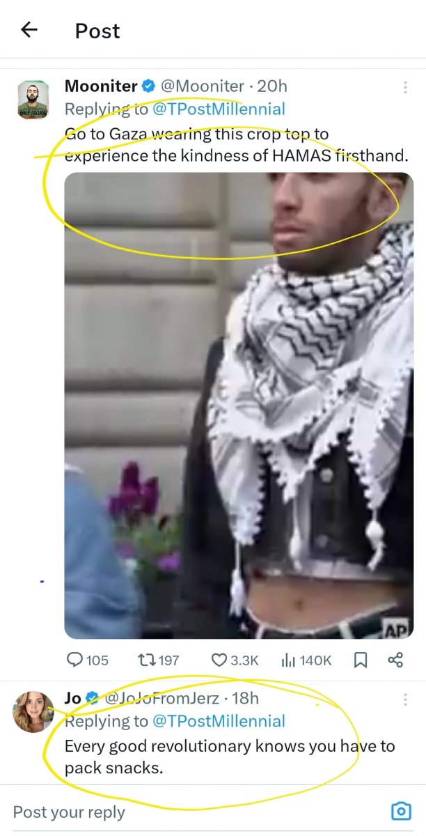 May 2, 20241 yr 19 hours ago, Cochis_Calhoun said: There are no agitators who are not students involved, at worst some of the students they expelled previously are in the camp, you've got the NYPD holding up common bike locks saying 'this shows there are outside agitators involved', it's horseshit, but it riles up the easily provoked and the people who had arrived at their views already. What is it with Darkstar and sieges? Some kids stage a cafeteria sit in "They should siege their asses, it worked at Vicksburg and throughout history" Jesus christ dude, go outside and touch some grass. so, you're the effeminate guy behind sltuzky, got it.