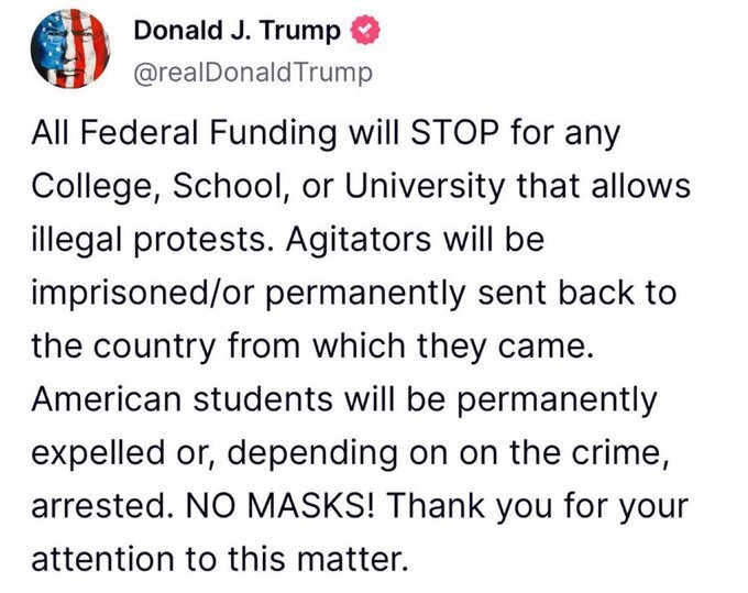 June 5, 20241 yr 44 minutes ago, paco said: More than a dozen arrests as Pro-Palestinian protesters occupy Stanford University president’s office Quote More than a dozen arrests as Pro-Palestinian protesters occupy Stanford University president’s office More than a dozen pro-Palestinian protesters were arrested Wednesday at Stanford University, the school said, after they broke into and occupied the office of the president demanding divestment, transparency and amnesty. They should have demanded an Oxford comma