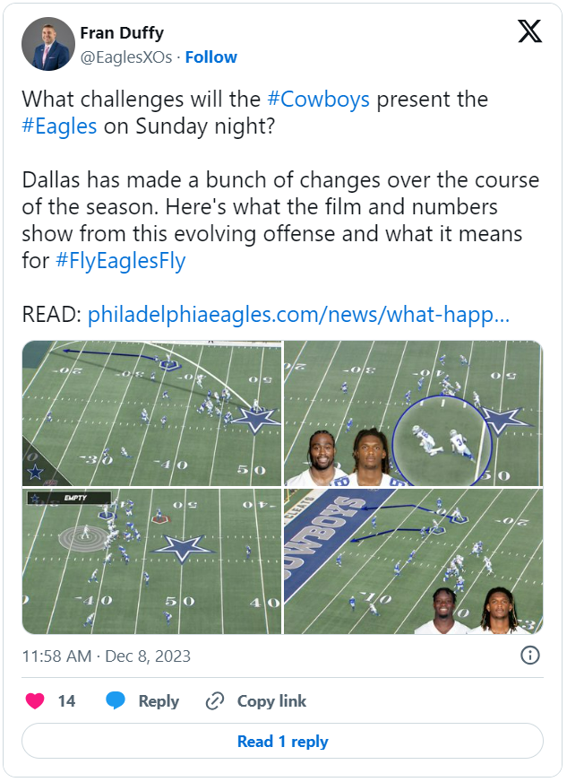 Posted December 10, 20231 yr Game Preview – PHI at DAL Posted: December 9th, 2023 | Author: Tommy Lawlor Eagles at Cowboys is always an interesting game. This one has about a million storylines. Can the Eagles bounce back from a butt-kicking by SF? Would a big game by Dak Prescott put him in front in the MVP race? What will we see from the Eagles defense? Can Dallas get their first win of the year against a good team? If I’m Nick Sirianni this week, my message to the team is to stress the need to be physical. Last week the Niners were the more physical, more aggressive team. That cannot happen two weeks in a row. I think back to Sean Desai talking about the Miami game and preparing for their speed. "We are going to have a long discussion about that today as a staff. I wouldn’t say it’s a mismatch but one thing that we always want to pride ourselves on defense is playing physical. And in my experience, even going back to my days at Temple and coaching special teams, speed can hurt you, but physicality can hurt speed. We want to be able to counteract that and we want to be able to swarm the ball carriers and run and make sure we are around the ball as much as we can be, and bring in a lot of bodies around the ball and try to get back to create some turnovers and getting the ball out as well.” The Eagles need this game to be a brawl, not a track meet. You want O-linemen firing off the ball and hitting Micah Parsons, not Parsons chasing Jalen Hurts in the backfield. Defenders need to fly to the ball and punish runners and receivers. The good news is that the Eagles beat the two fastest teams they already played, Miami and Dallas. Most of the attention will be focused on the Dallas offense/Philly defense. The Cowboys have scored 41 or more points in 3 of the last 4 games. Prescott and their offense are red hot. They haven’t played good defenses recently, but they are still putting up crazy numbers. Can the Eagles slow them down? They did in the first meeting, giving up 406 yards, but only 23 points. It would be great for the Eagles to play their best game of the year and shut Dak and the fellas down. That isn’t necessary to win. The Eagles need some key stops and to make some key plays. This defense has enough talent to do that. Zach Cunningham is back after missing last week. He’s the team’s best LB so having him will certainly help. We’ll have to see how much Shaq Leonard plays. I don’t think he’ll be out there a lot, but he has coverage skills so maybe he can help in certain packages. CeeDee Lamb destroyed the Eagles in the first game, going 11-191. Bradley Roby missed that game, but will play on Sunday. He doesn’t have the ability to shut down Lamb. Roby does know how to play the nickel position and he will do a better job of covering than what the Eagles did in the first game. Lamb was wide open way too much. He’ll still make plays, but the Eagles need to make it more difficult. And if Roby can make a play, that will help. Kevin Byard played in the first game, but he was still learning the defense. He’s played better in recent weeks and could help in this game. TE Jake Ferguson has been hot so maybe Desai will match up Byard on him in some looks. The Eagles wore out RT Terrence Steele in the first game. They will need to do that again if they are going to make some plays and slow down the Cowboys. Prescott used his legs to avoid pressure in the first game. The Eagles need to have a better plan for dealing with his scrambling. I’m curious to see what the Eagles do offensively. They struggled to run the ball a month ago, even though they won. D’Andre Swift was just 18-43 in that game. There will be one big difference this time. Rookie Tyler Steen was the RG that day. Cam Jurgens is healthy and is back at RG. He is a much better run blocker than Steen right now. I could see Sirianni coming out running the ball. He wouldn’t do that to appease the fans/media calling for it. Sirianni would run so that the OL can set the tone for the game and win some battles up front. The OL struggled with run blocking last week. I’m sure those guys are hungry to get the run game going. Dallas Goedert will be back for the first time since he got hurt against Dallas last month. He will offer help to the run game and the pass game. The Eagles have definitely missed him. Hurts needs to play well. He did not have a good game last week. Hurts needs to make good reads and smart decisions. He needs to get the ball to his playmakers and let them do the work. Brian Johnson called some really good plays in the first game. He and Hurts were on the same page. The players executed really well. Johnson needs to figure out how to get Hurts going early. You don’t want to fall behind Dallas with the way they are playing right now. Special teams is always important against Dallas. KaVontae Turpin had a 48-yard KOR and a couple of good PRs in the first game. The Eagles have played well on STs this year, but they will need to be especially good on Sunday night. This game is huge as far as the NFC East goes. A win practically guarantees the Eagles are division champs. A loss gives both teams 10-3 records and means the division is wide open. It would also put tremendous pressure on the Eagles. Hurts hasn’t lost two games in a row in more than two years. Then again, these are a pair of incredibly challenging games. This will also be a huge test for Dallas. Their best wins are over the Rams and Seahawks, hardly juggernauts. The Cowboys need to show they can beat a good team. I’m sure the Eagles are desperate to flush last week’s game into history. A showdown with Dallas gives them a great opportunity to do just that. ***** http://igglesblitz.com/2023/12/game-preview-phi-at-dal-7/