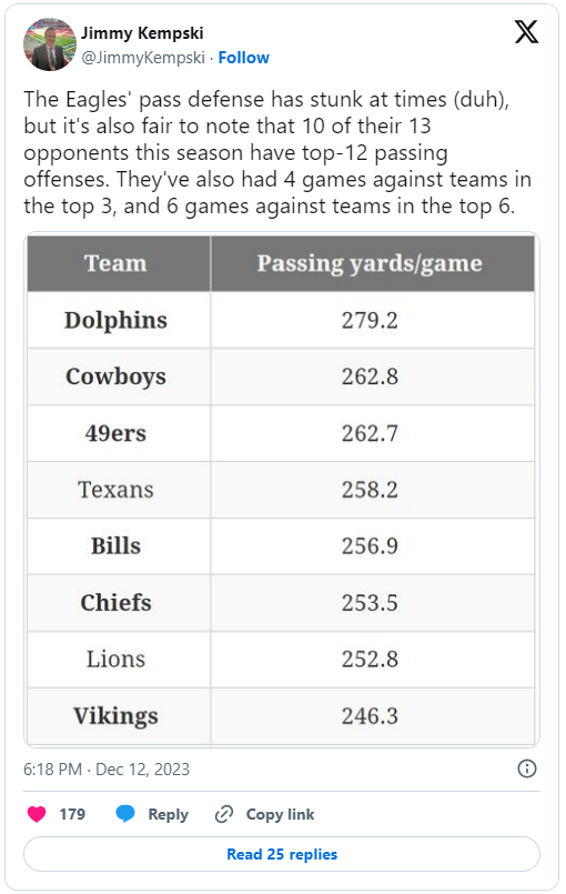 Posted December 15, 20231 yr Free Advice Posted: December 12th, 2023 | Author: Tommy Lawlor Hey Eagles, you have one month of football left in the regular season. Tick-tock, gents. You have problems and they need solutions. There are no magic elixirs, but you can surely figure out ways to get better on third downs and in the red zone. If not, you’re going to have a lot of time off in January and nobody wants that. Your schedule gets easier so you have a solid shot to win out and be the NFC East champs. That would be cool, but we want a Super Bowl. Ask Buffalo fans about division titles. They’ve won 3 in a row, but they’d kill for another chance to play in the Super Bowl. Beating Seattle, Arizona and the Giants isn’t as important as solving problems. The Vikings went 13-4 last year. They got to the postseason and got exposed by the Giants. Then those same Giants came to Philly and got destroyed, losing 38-7. The last thing we want is to see our team go 14-3 and then get have an embarrassing loss in the playoffs. Football ain’t that complicated. Block better. Tackle better. Cover tighter. Catch the damn ball when it’s thrown to you. And for god’s sake, hold onto the friggin ball when you’ve got it in your hands. Play smart. This roster still has plenty of talent. Nobody has to be Superman. Do your job. And do it well. Winning games is important, but playing good football is more important. That will translate to the postseason. This can still be a good season. A couple of bad games can be a bump in the road if you use the final month to get your act together. The last couple of weeks were miserable. We had to watch you eat crap sandwiches served by Brock Purdy and Dak Prescott. That’s about as bad as it gets. All we want for Christmas is some good Eagles football. ***** This is one of the reasons I still think this team can do some damage. They don’t just have a good record. They are tied for the best record in the league despite playing a brutally tough schedule. That has to count for something. ***** Seattle is middle of the road. This will be an interesting test. If they light up the Eagles, that would be a bad sign. The Seahawks do have some serious weapons, but that offense is erratic. As I think about the recent stretch of games, I’m reminded of being in the ocean. You get knocked down by a wave and it tosses you around. You get your feet under you stand up and boom – there’s the next wave. It knocks you right back under water and spinning around like a sock in a washing machine. You stand back up and the next wave comes in. It can get you flustered. Eventually you get up and are able to make it to shallow water where the waves crash harmlessly into your legs. The Eagles got pummeled by recent teams. Maybe this week they’ll be able to get their feet under them and settle things down. http://igglesblitz.com/2023/12/free-advice-2/