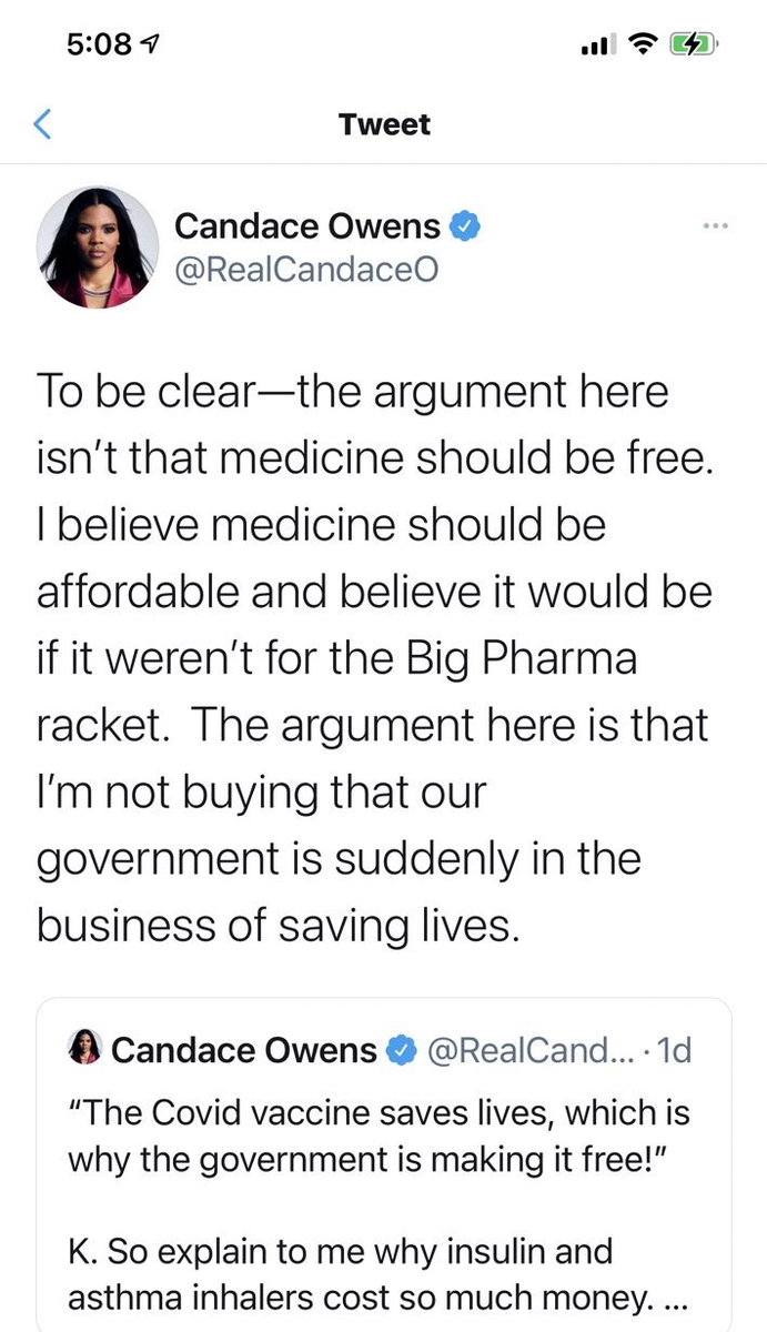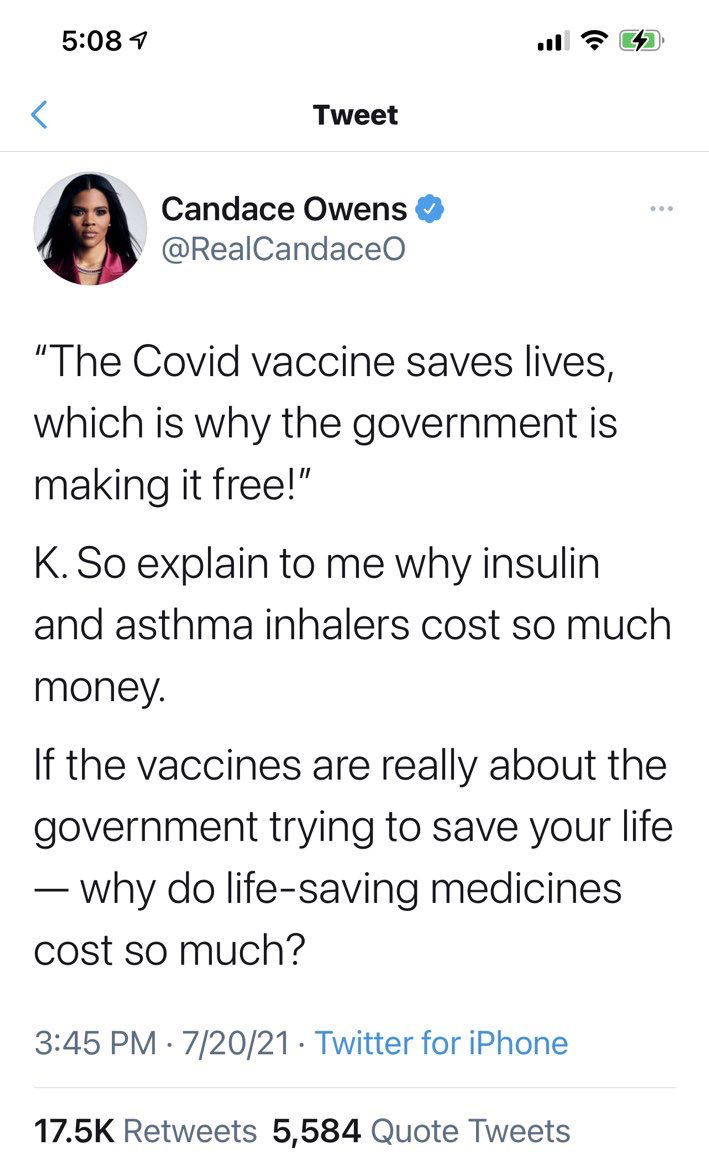 July 22, 20214 yr For a second it almost sounded like she cared that people couldn't afford life-saving medicine, so I'm glad she clarified.