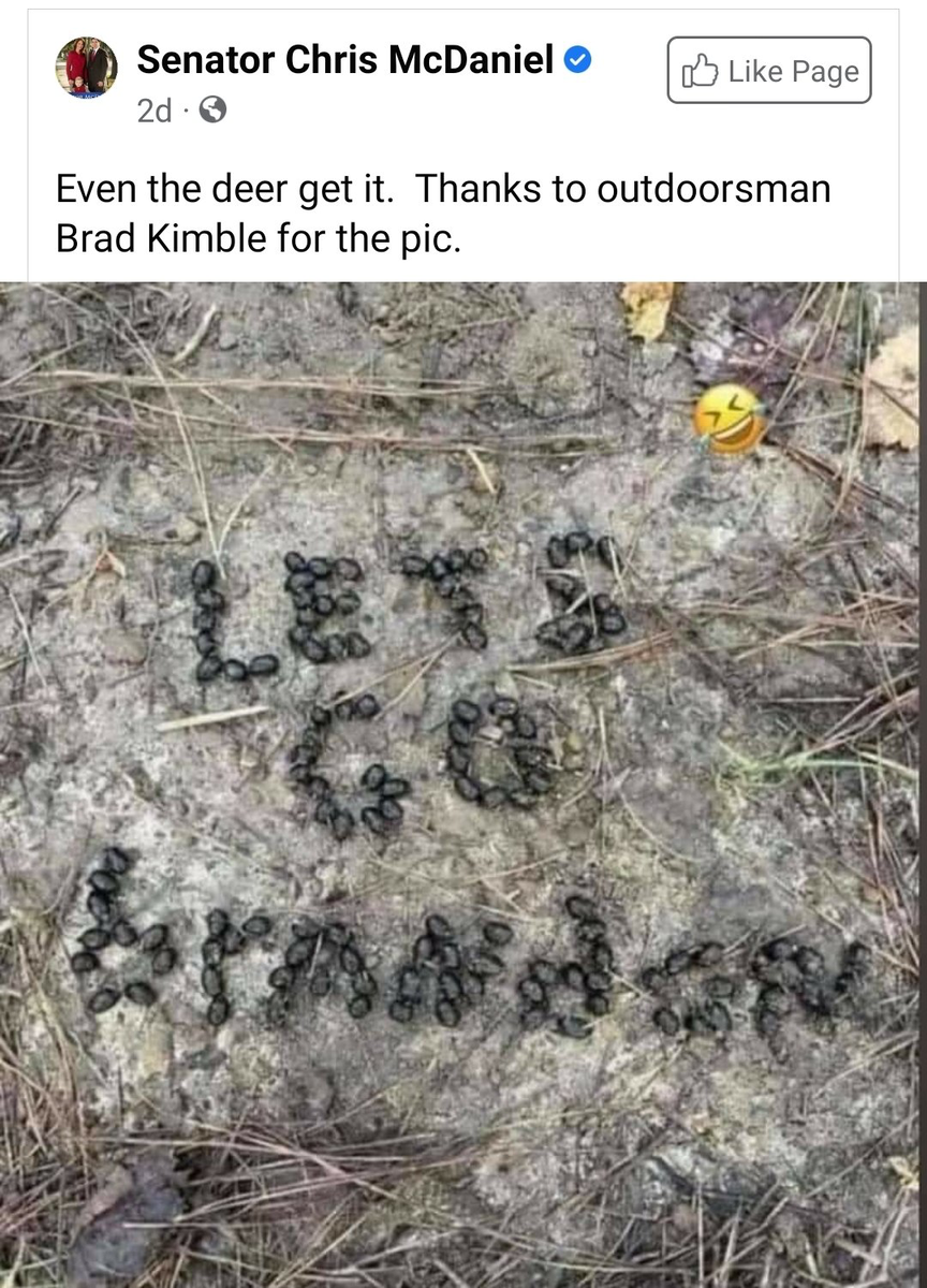 November 13, 20214 yr 10 hours ago, toolg said: So this guy played with deer poop to own the libs… Senator Chris McDaniel, huh? At least we don't have to pretend to care about "respecting the office of the presidency" anymore.