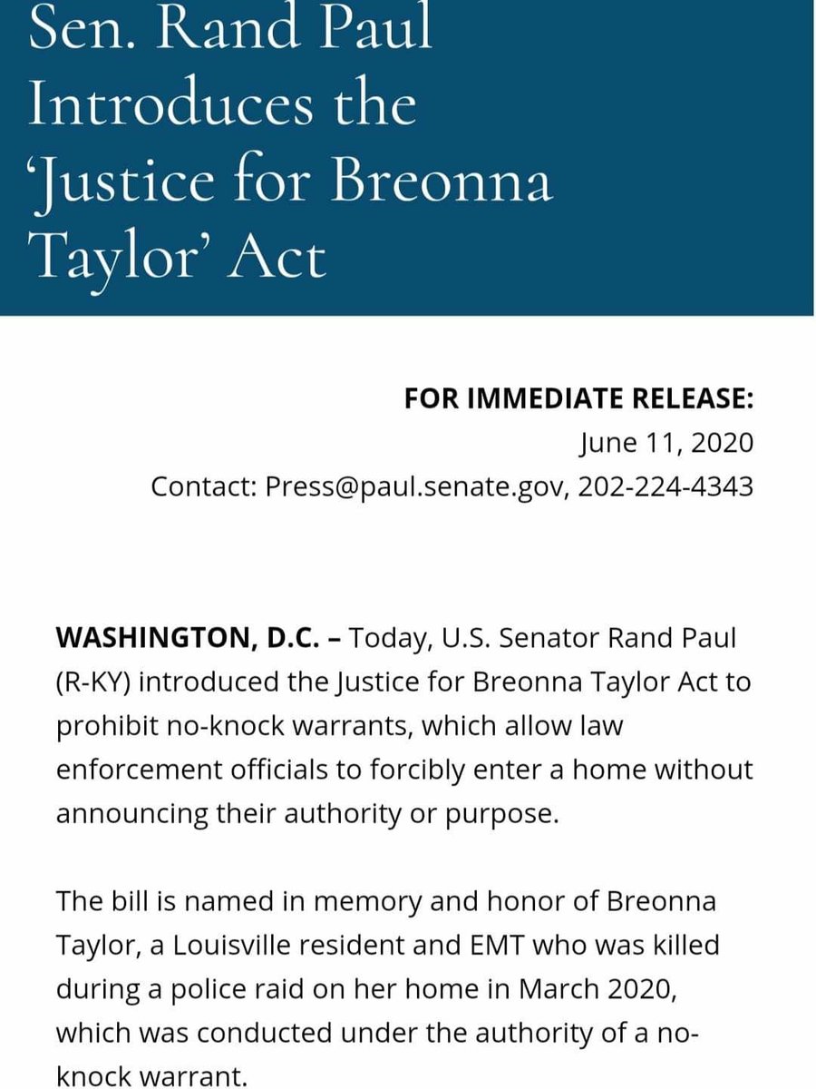 June 14, 20205 yr 6 hours ago, NOTW said: https://www.paul.senate.gov/news/sen-rand-paul-introduces-justice-breonna-taylor-act Anyone know if in the Taylor case they had the wrong address? People at work told me it was the wrong address but I can’t find that myself online.
