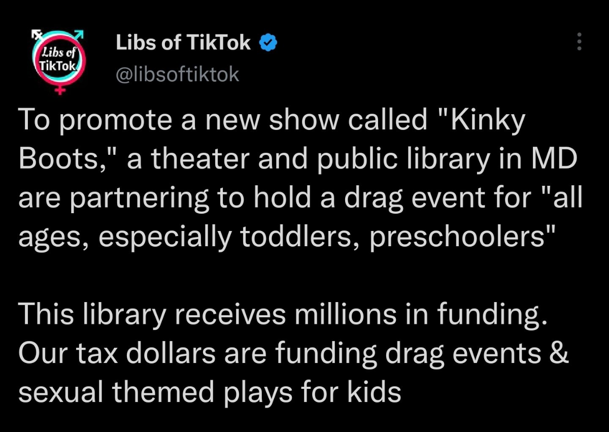 February 3, 20232 yr 10 hours ago, Blazehound said: Their issue appears to be holding a drag event, promoting it especially for toddlers and preschoolers for some twisted reason. These are the events in question LINK Quote Olney Theatre Center has a quartet of programs slated in conjunction with the run of the hit musical Kinky Boots, which begins performances on February 10. These programs, which take audiences both "Behind the Scenes" and "Beyond the Stage" include a panel discussion (February 16) prior to the official opening night performance, a drag makeup workshop (February 25), a singles event (March 9), and an "Olney Theatre in the Community" event, a story hour for families hosted by drag queen D'manda Martini at the Olney branch of the Montgomery County Public Library (February 26). The programs are the brainchild of Shruthi Mukund, Olney Theatre's Director of Community Engagement, and created in conversation with the Community Engagement Committee, which consists of local residents from all walks of life seeking to make the theatre a more welcoming space. Said Mukund, "These events are inviting the community to engage with drag culture in a variety of ways, intellectually through discussions, viscerally through the makeup workshop, and socially with our story hour for families and singles' night for adults of all ages." What's wrong with wearing make-up and playing dress up? I wonder why sickos always try to make it sexual.