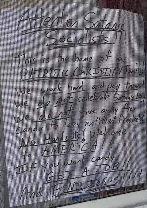 September 12, 20232 yr 19 hours ago, Toastrel said: Huh. Church taught me to go trick-or-treat in the neighborhood because they teach "love thy neighbor".