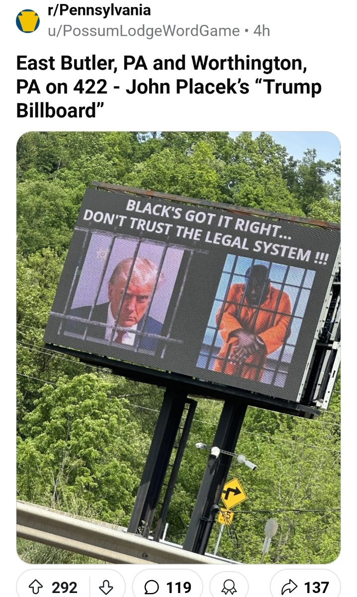 June 7, 20241 yr 4 hours ago, mr_hunt said: https://triblive.com/local/valley-news-dispatch/worthington-businessman-defends-billboard-messages-some-consider-hate-speech/ He really went wild in his MS Paint program and paid money to have that shite on billboards.