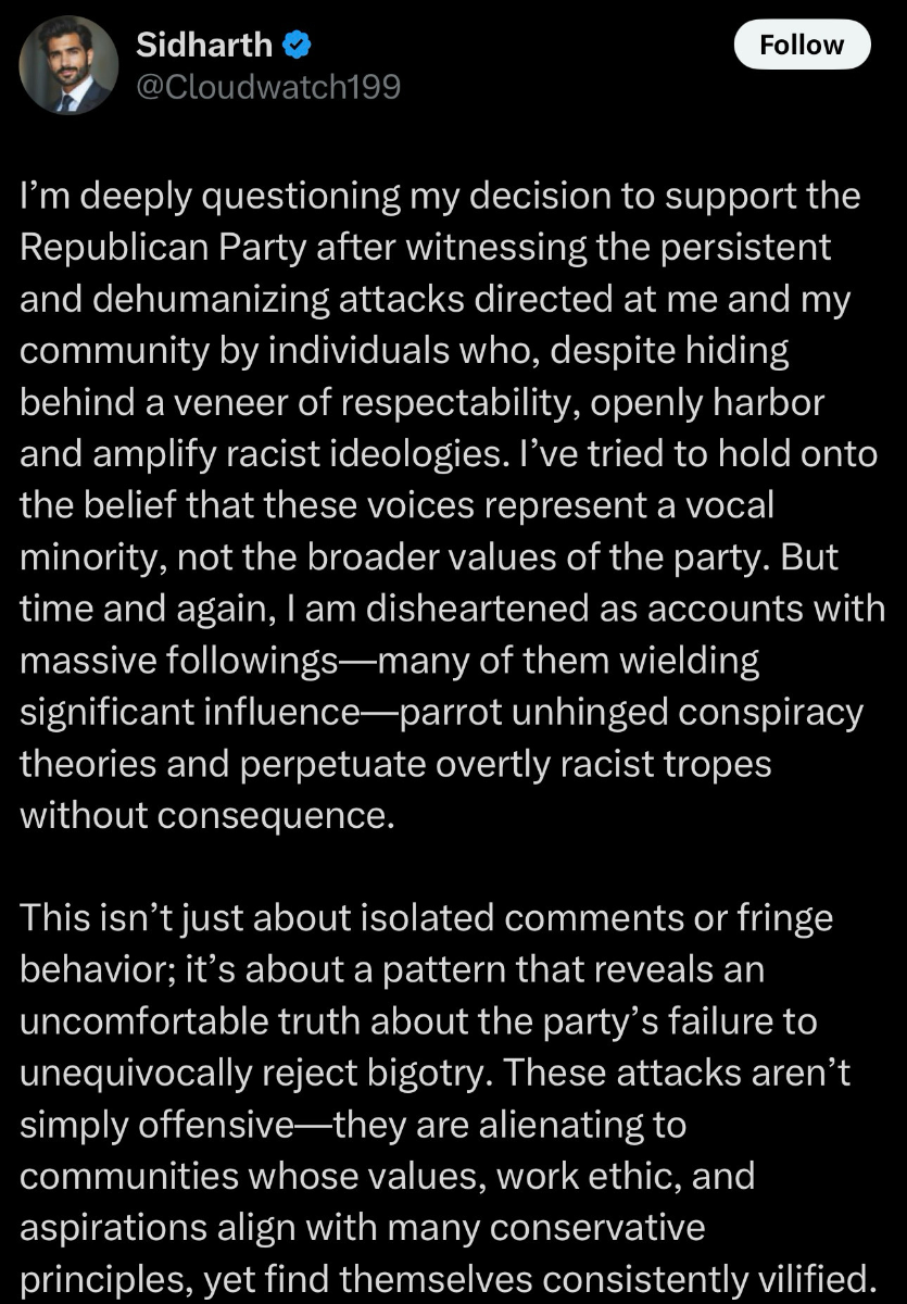 December 28, 2024Dec 28 1 hour ago, toolg said: He just figured this out? Big "I can fix her" energy. Yeah, these non-white MAGA voters are about to get hit in the face with some hard lessons in American history. Anyway... tough luck there, Sidharth. Hope you've lubed up.