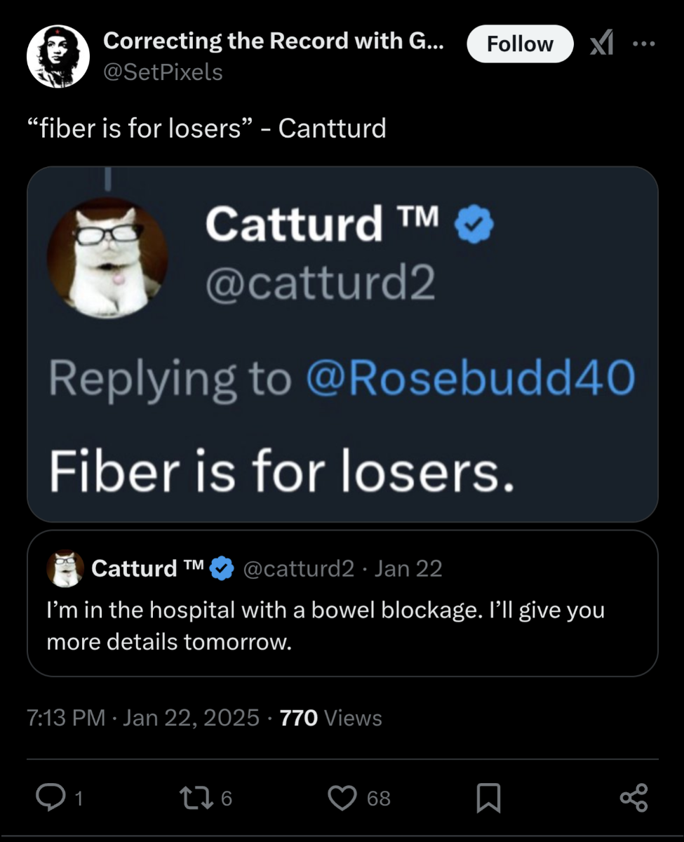 January 23Jan 23 If a fiction writer put this in their book to set up an antagonist, their editor would tell them it's too on the nose.