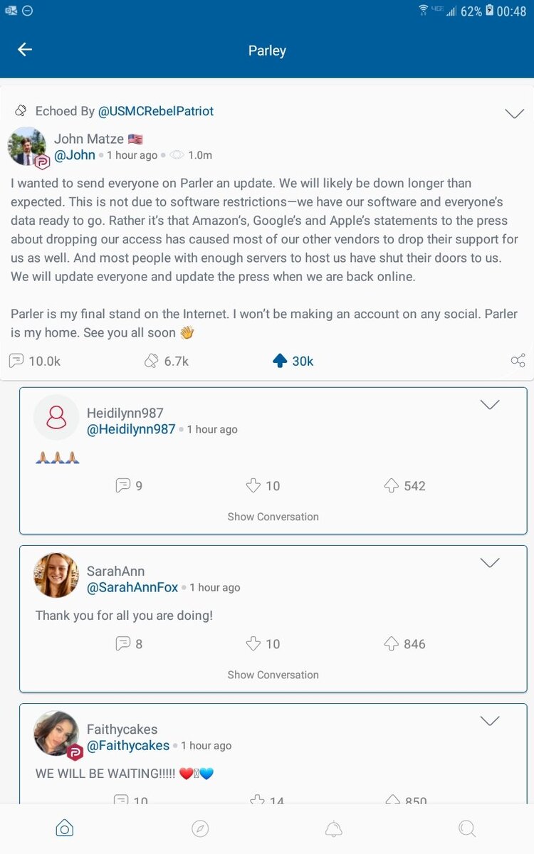 January 10, 20214 yr 2 hours ago, Toastrel said: Damn. Parler dropped from Amazon, Google and Apple. Where are the right wing nuthatches going to congregate now? FIRST 'MENDMENT!! Cvon