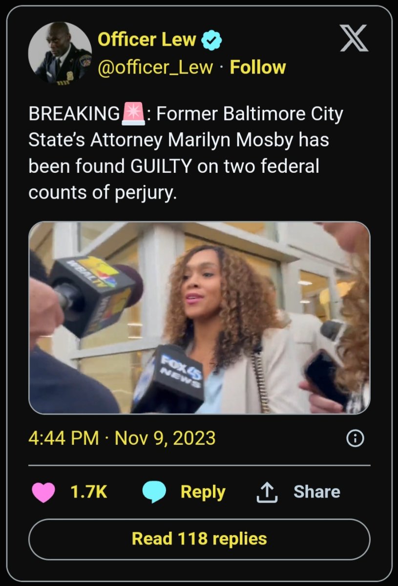 May 23, 20241 yr Author *Shockey face https://apnews.com/article/marilyn-mosby-baltimore-prosecutor-sentencing-8f2419edd3ff404cdf24434777e6eefe