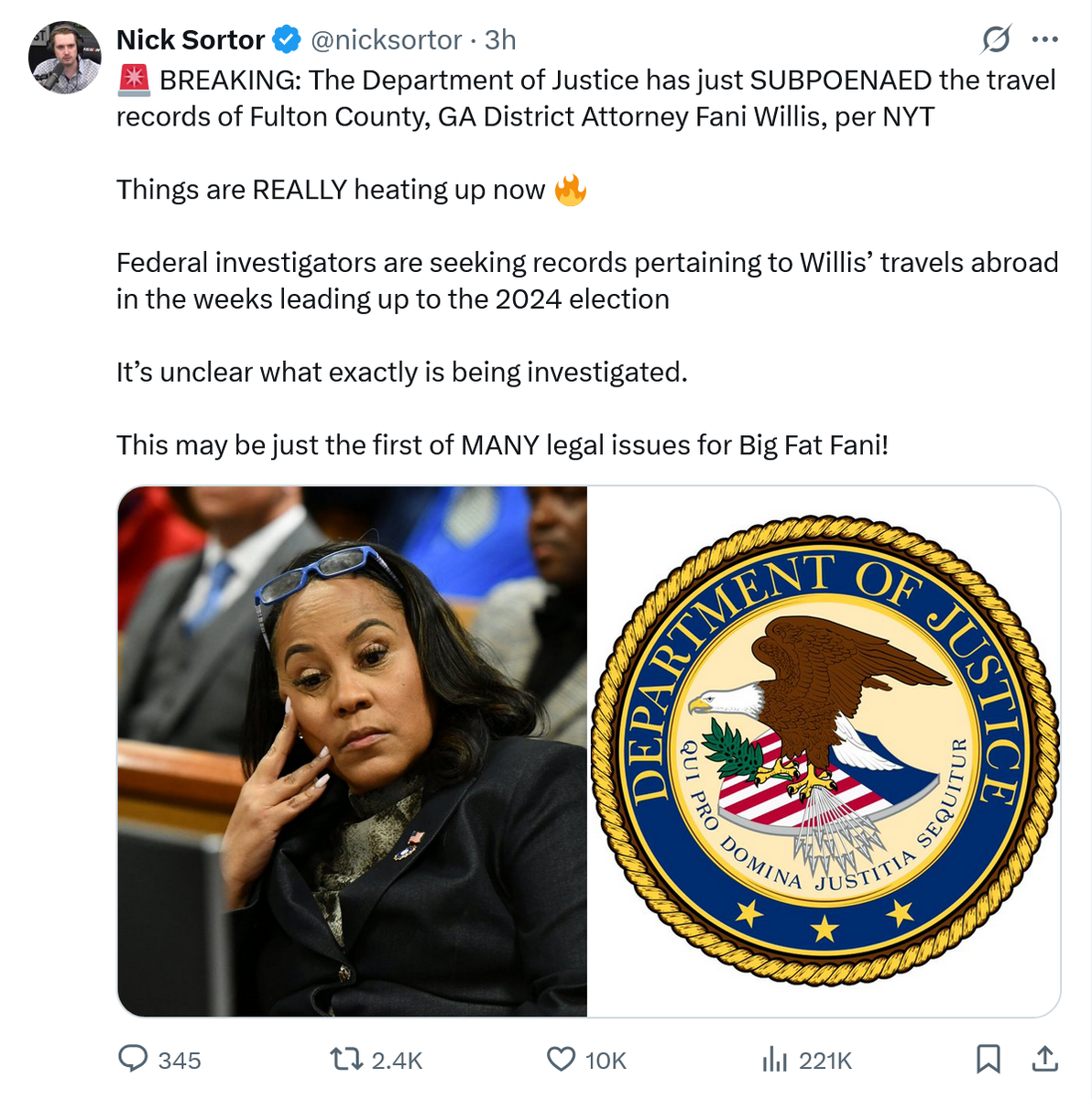 September 16Sep 16 Author Buh bye Fani. Don't let the door slam you in your big fat fanny.Lawfare takes another hit. Hopefully it will soon hit the dustbin of history.https://www.foxnews.com/politics/fani-willis-permanently-removed-from-prosecuting-trump-election-interference-case-after-losing-appealFani Willis permanently removed from prosecuting Trump election interference case after losing appealThe Georgia Supreme Court refused to review her removal over a relationship with the special prosecutor