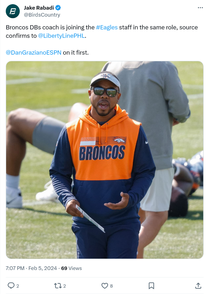February 5, 20241 yr I don't think we'll see any more announcements from the Eagles until the entire staff is set and that could be a few weeks