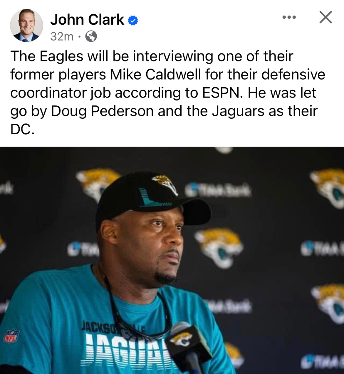 January 22, 20241 yr 2 hours ago, T-1000 said: I don't get the Mike Caldwell interview at all, unless they are just doing a favor for a former player by getting his name out there. I guess they need a backup plan in case Rivera and Martindale both say no to the job. Really hoping it's not Mike Cardwell they end up with. The Jags already hired former Falcons DC Ryan Nielsen, the other guy the Eagles reached out to for the job. Hopefully they don't drag this process out too long otherwise they'll miss out on these guys as well.