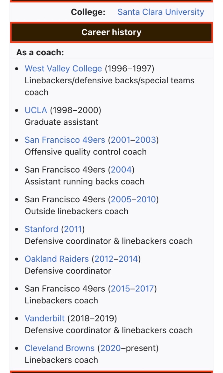 January 23, 20241 yr 16 minutes ago, 20dawk4life said: What about Jason Target the Browns LB coach. He has DC experience and comes from Schwartz. Schwartz fits the style we like to run obviously. https://en.m.wikipedia.org/wiki/Jason_Tarver If you've seen the reports, they're changing the defense style almost certainly. It feels like Vic Fangio lineage for us is over, based on the candidates we're seeing.