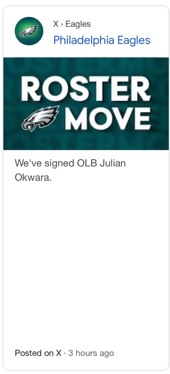 February 15, 20241 yr 18 hours ago, time2rock said: Howie signs former 3rd rd OLB/DE Julian Okwara. I liked him college and he had 5 sacks his second year but since then he hasn't done much to stand out in Detroit. Injuries are partly a factor. Not a bad guy to take a flyer on and bring into TC.