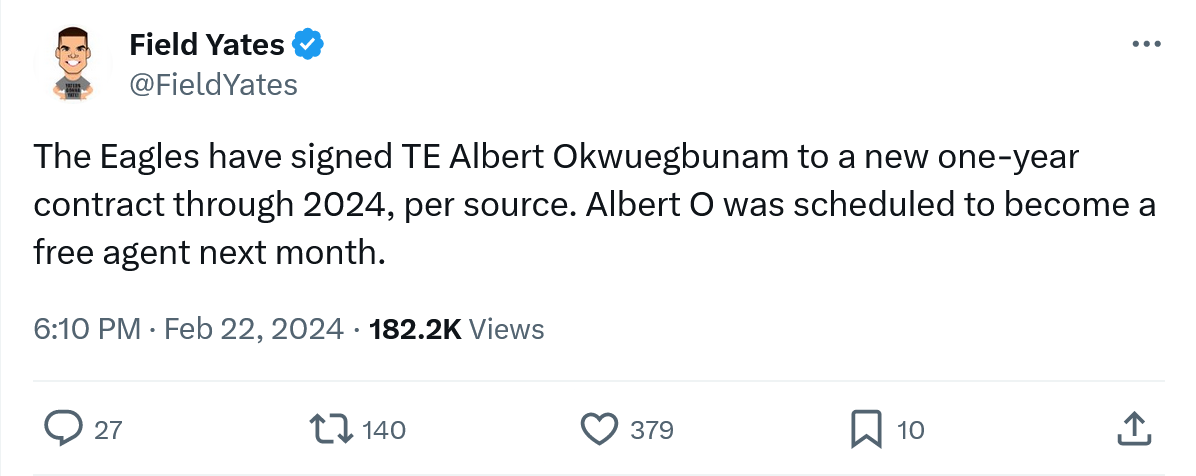 February 21, 20241 yr Author Eagles also sign OT Darian Kinnard (former 5th rd pick of the Chiefs). https://www.nbcsports.com/nfl/profootballtalk/rumor-mill/news/eagles-sign-t-darian-kinnard