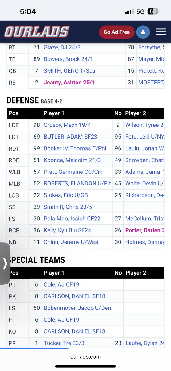 September 2, 2025Sep 2 10 minutes ago, cunninghamtheman said:Seems this depth chart on the Raiders is contradicting your research there No Mas. Calling Booker their starter.Go review my research. Tell me exactly... WHAT I SAID" Me... not another poster on here... but exactly my posts regarding the Raiders depth chart. What do you find... now be careful because unless you say you are mistaken... you will prove once again how you put words in people's mouths and lie about what they say.Because you will mot find one post that I made regarding the Raiders depth chart.