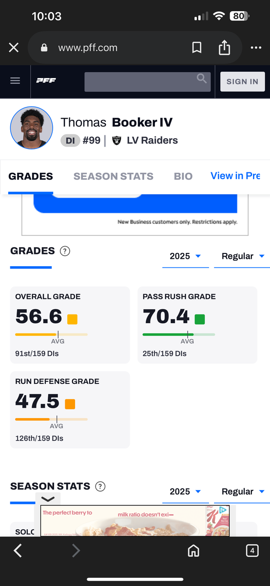 September 18, 2025Sep 18 Wasn’t Booker supposed to be this top run defender why we needed him? He has been a positive in the pass rush though his overall grade through two week per PFF is still below average