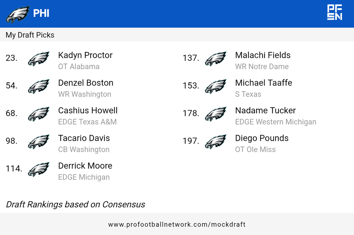 Friday at 05:47 PM4 days I just love when the mock draft breaks and every pick is like why is that guy still on the board like a rd or 2 later then they should be.