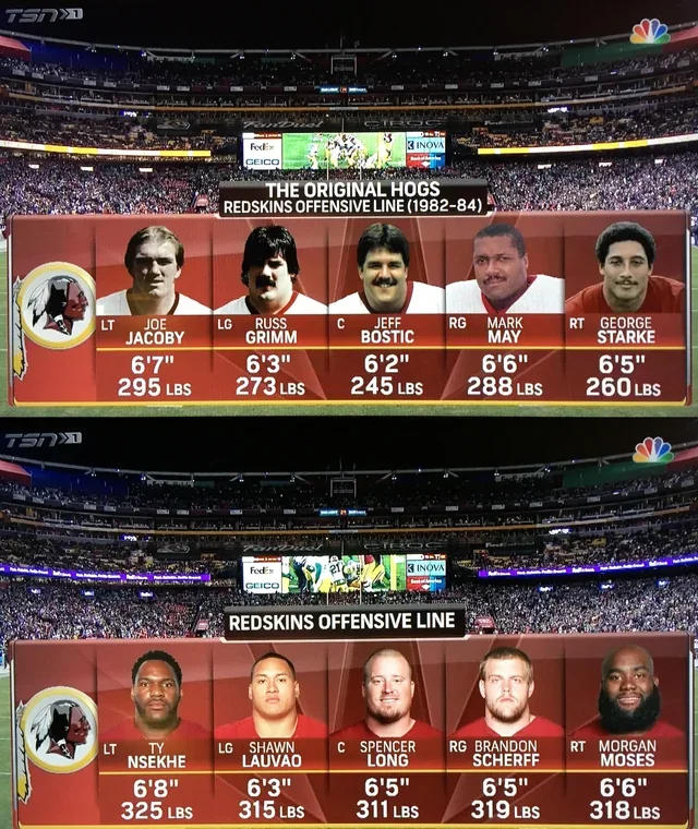 April 30, 20241 yr 1 hour ago, cunninghamtheman said: It’s just insane the size these Oline guys are now. How big were the old Hogs Oline back in the day mauling people? Weren’t even close to the 6’8” 360 pounders. And the opposite with the DL...how many edge guys are Reggie's size now??? 6'5" 291 lbs???
