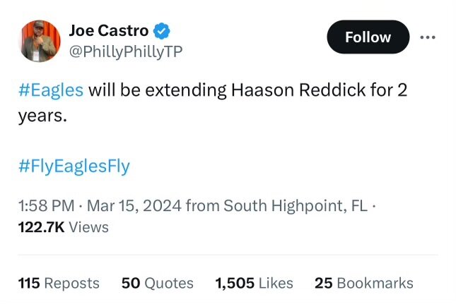 March 19, 20241 yr My favorite Eagle other than Kelce. It'll be a huge bummer if he goes. We'd better get good value back otherwise it makes no sense.