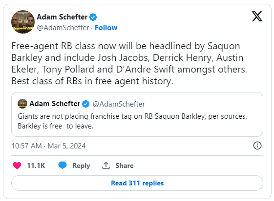 Posted March 7, 20241 yr Former Georgia Star D'Andre Swift Preparing for Free Agency After earning his first Pro Bowl selection, former Georgia running back D'Andre Swift will be a hot commodity on the NFL free agent market. CHRISTIAN GOECKEL MAR 5, 2024 We're a week away from free agency in the NFL and this should be a loaded group. Teams can begin negotiations with free agents on Monday, March 11th, and players can officially sign with teams beginning on Wednesday, March 13th. Of all the positions in this year's crop of free agents, none is deeper than the running back group. Derrick Henry, Josh Jacobs, and Saquan Barkley will all be looking for new homes. Also hitting the market will be former Georgia running back D'Andre Swift, who is nearing the end of his rookie contract. Swift initially signed the four-year deal in Detroit as a rookie in 2020 but was traded to Philadelphia before this past season. He had a career year with the Eagles, compiling 1,263 yards on 268 touches and earning his first Pro Bowl selection. Most signs point towards Swift returning to the Eagles on a new deal, but the former All-SEC back will have plenty of suitors regardless. During his time at Georgia, Swift was part of some of the best running back rooms in school history. He teamed with Nick Chubb and Sony Michel to lead Georgia to the school's first College Football Playoff berth as a freshman. His incredible stop-and-start abilities made him a fan favorite in Athens and a headache for opposing defensive coordinators. D'Andre Swift is seventh all-time in Georgia history in rushing yards, accumulating 2,885 yards from 2017 to 2019. https://www.si.com/college/georgia/football/philadelphia-eagles-rb-dandre-swift-prepares-for-nfl-free-agency