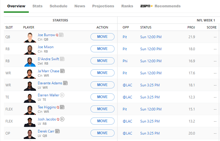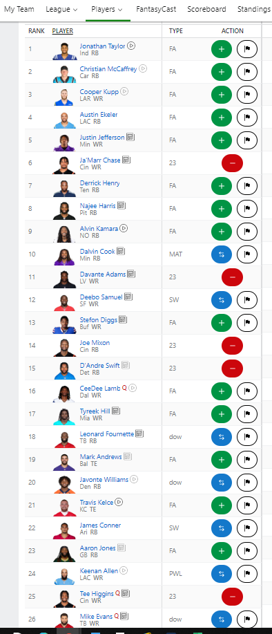 August 22, 20223 yr Author 4 minutes ago, Agent23 said: I'm sitting on the below.. Maybe I can flip Swift+Higgins for McCaffrey and like JuJu? Overall player projection rankings below nah...i think i'll hang onto the guy ranked #1 in ppr on most sites.
