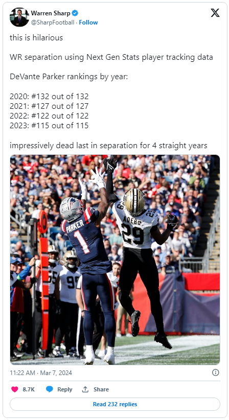 March 13, 20241 yr The separation thing does worry me I’ll say that. But as a WR 3 (if he remains on the roster and we don’t add more WRs which I think we will) I think he’s fine.