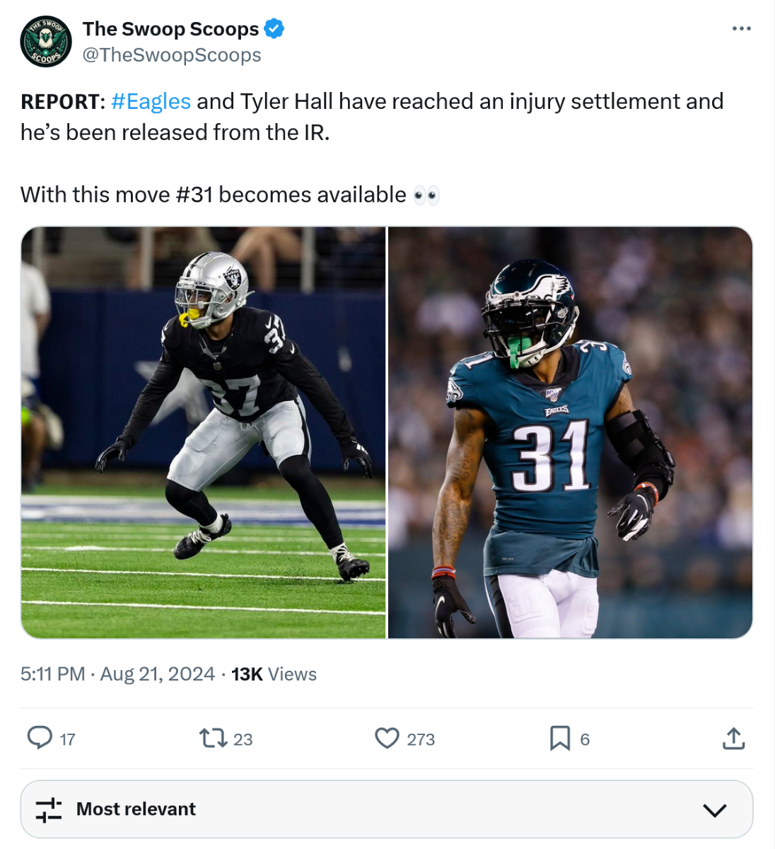 August 19, 20241 yr 6 hours ago, brkmsn said: I don't think he's a bad player or this was a bad signing. But since that time, we have added a lot of competition. He missed his best opportunity here by a year. Completely agree! When we signed him I thought it was a good addition and a player who was going to get quite a lot of playing time. Then they cut Maddox and I thought maybe he’ll be the starter. But they’ve added DeJean and they’ve played Mitchell in the slot and they brought back Maddox. So at this point he’s probably not going to make the roster but the logic was there at the time.